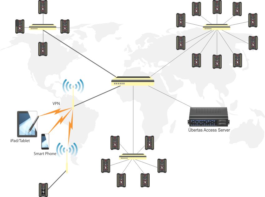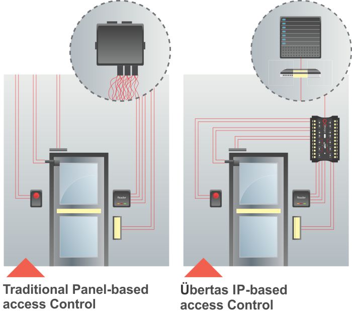 The Übertas IP-based access control system provides unmatched scalability. Add one or more doors as your needs grow. Simply add an Übertas IP Door Controller and connect a CAT5/6 cable to the nearest network switch. When using common door strikes, no power is required at the door. There is no need for any home run multi-conductor cable. A CAT5/6 from the network switch is the only cable required. Your cost of installation is minimal!